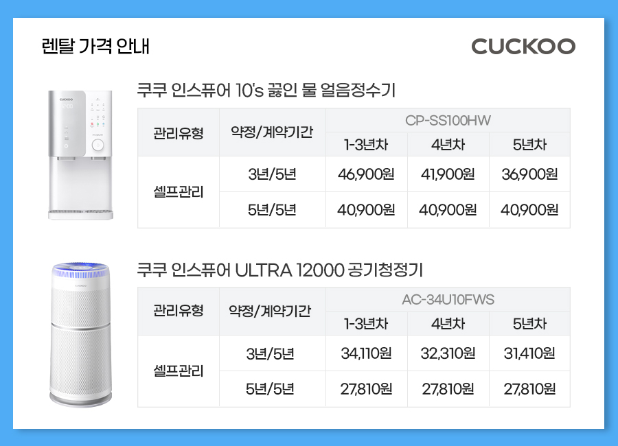 쿠쿠 끓인 물 얼음정수기 + 쿠쿠 ULTRA 12000 공기청정기 34평형
