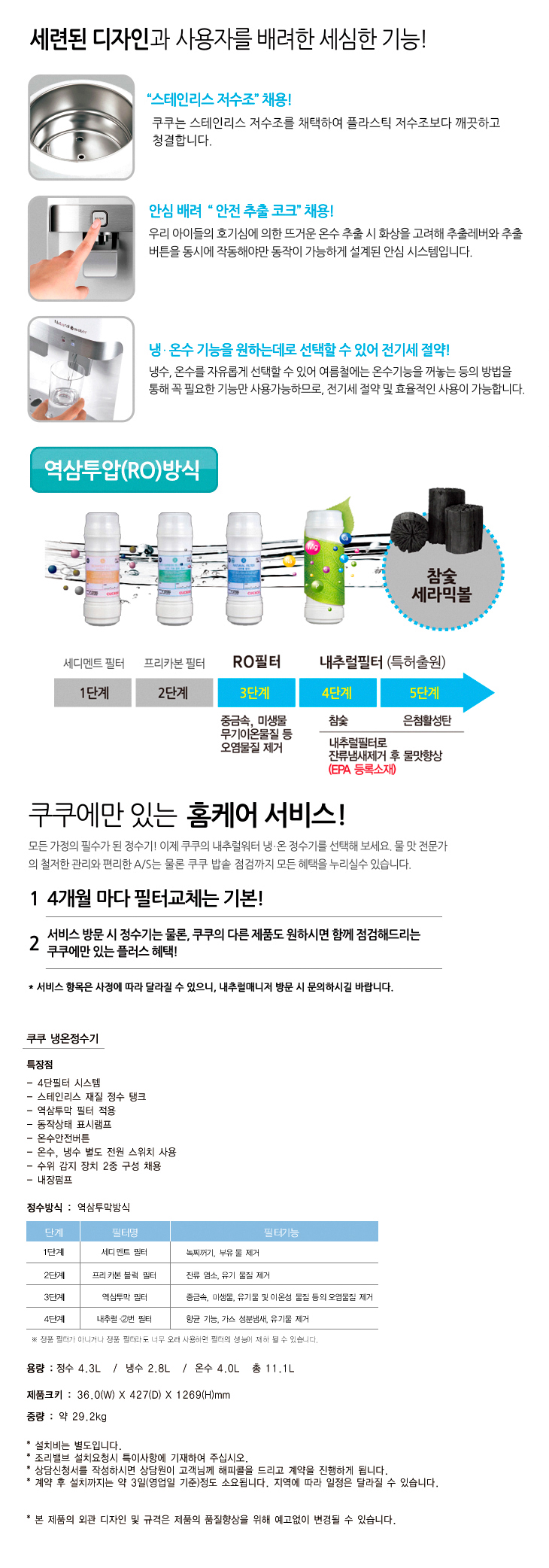 [렌탈] 쿠쿠 업소용 대용량 냉온정수기(지하수전용)